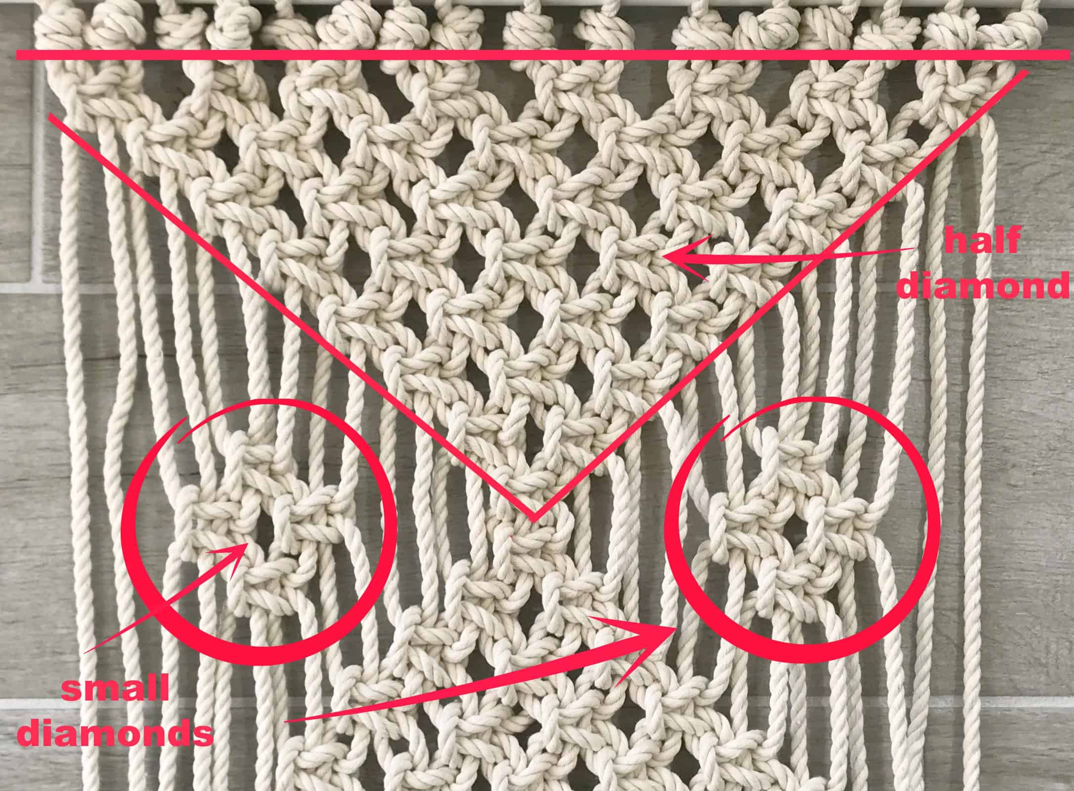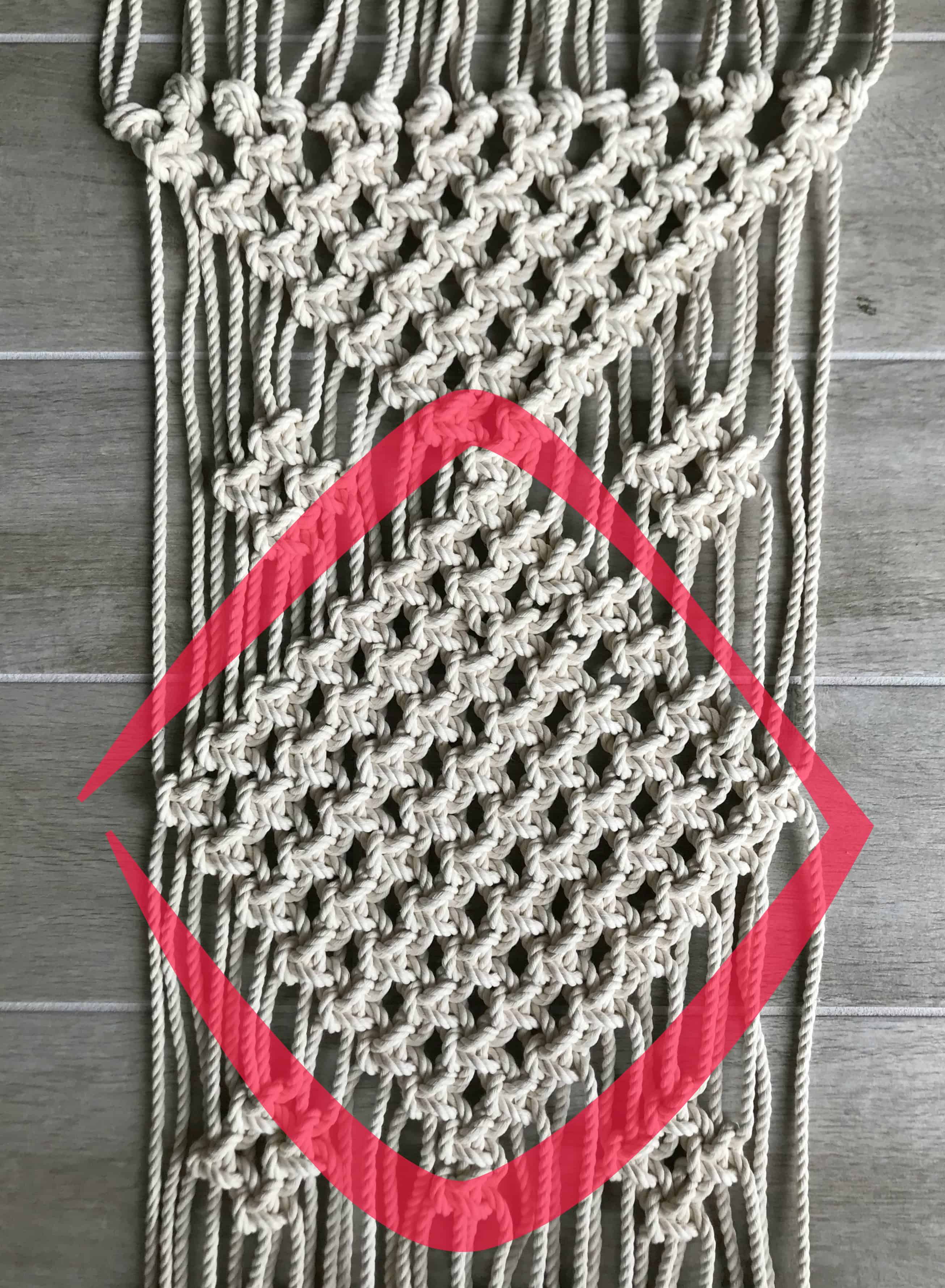 Once this diamond is completed, add an extra Square Knot just below the center knot in row 15.
