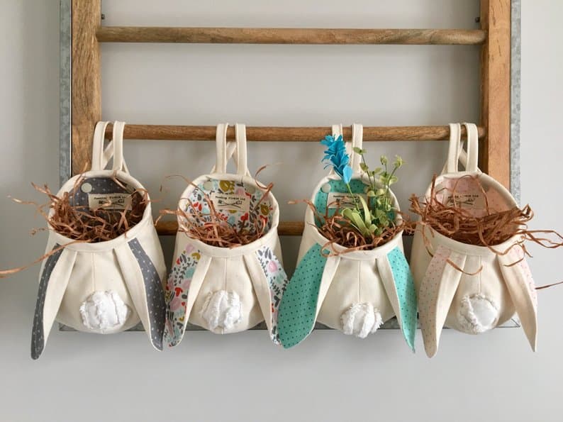 Tired of those Walmart baskets in your Easter stockpile? Why not opt for some original ones, like these shabby chic bunny ears baskets or these vintage chenille hanging pods from FeedingPickle?