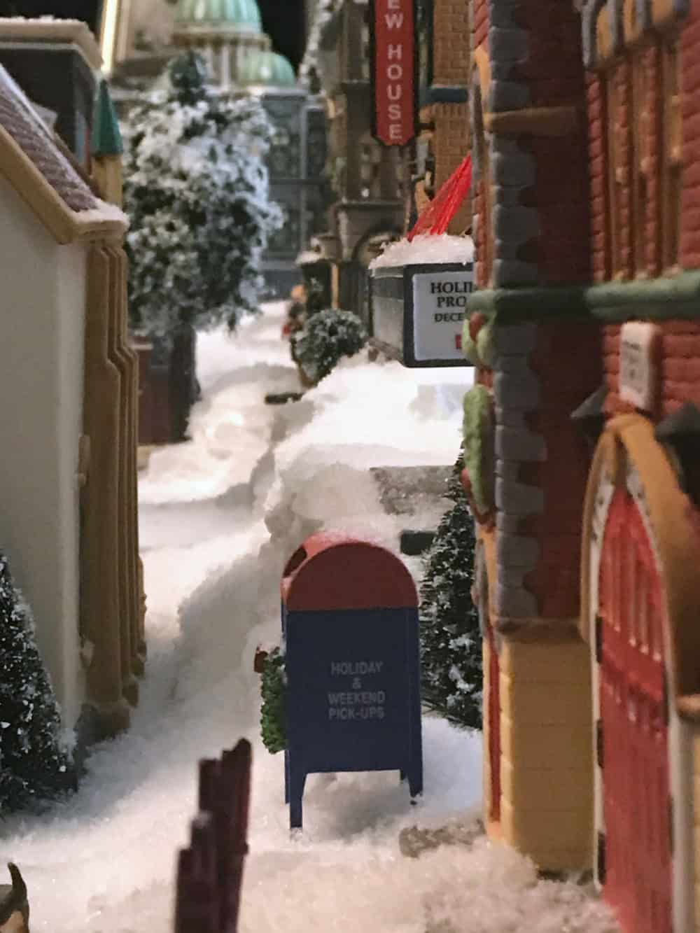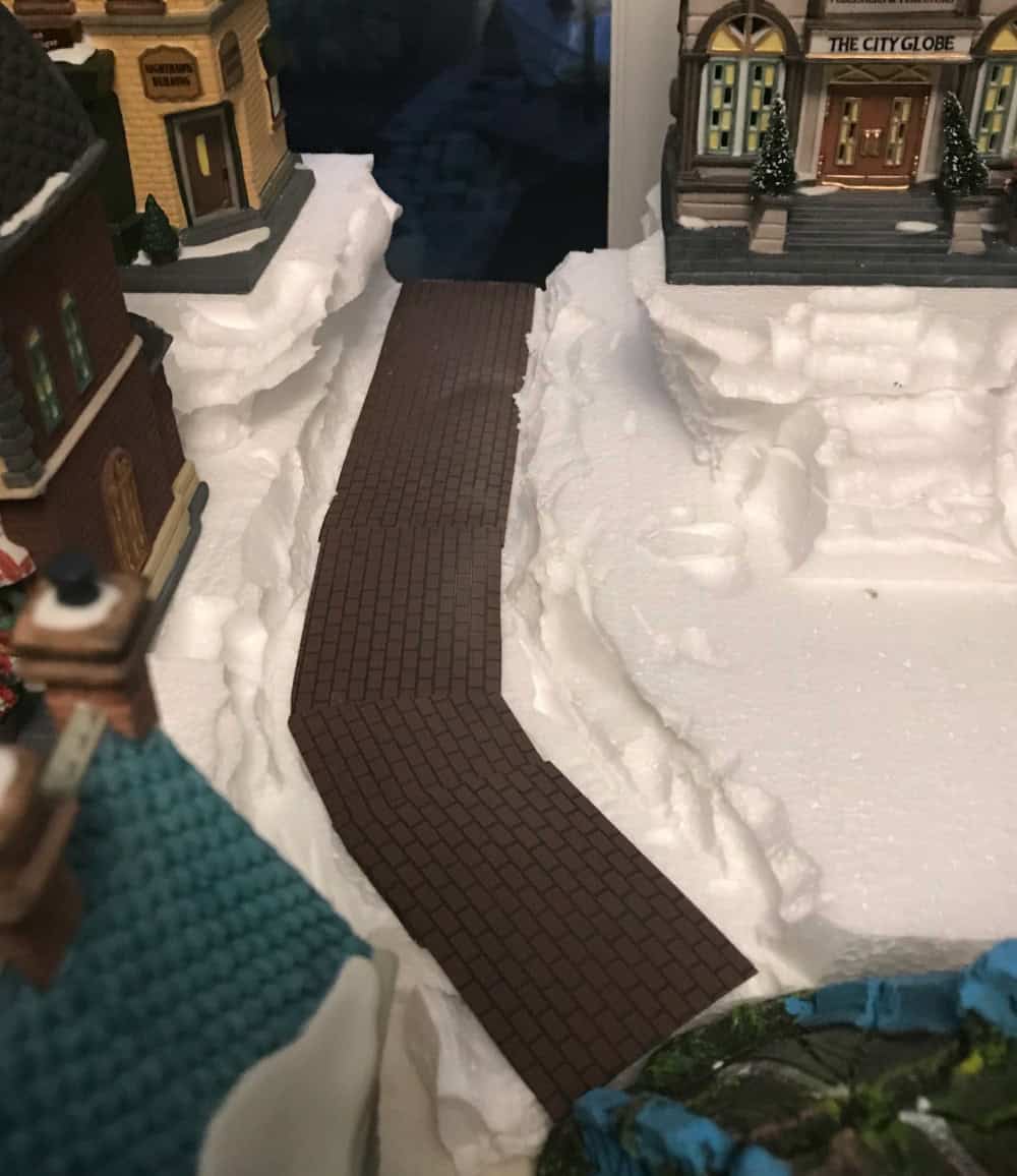 Lastly, sprinkle a layer of snow over the entire city. This camouflages the hard edges of the sidewalks and streets. Create snow mounds to cover any flaws. And don’t forget to “sweep” the walkways for an even more realistic effect.