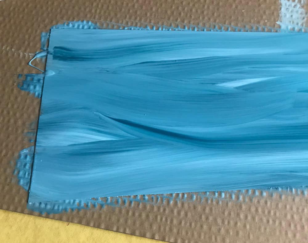 Amp up the magic by adding a frozen pond or lake. Because my neighborhood rests on the bank of the Ohio River, I love adding an icy river with a rocky crags. This year I bought an inexpensive Plexiglas poster frame from Michaels then cut the Plexiglas into rectangular strips. Plexiglas makes beautiful waterways. Peel off the protective plastic film, then paint one side of the Plexiglas with acrylic paint. Once dry, add it to the village with painted side face down.