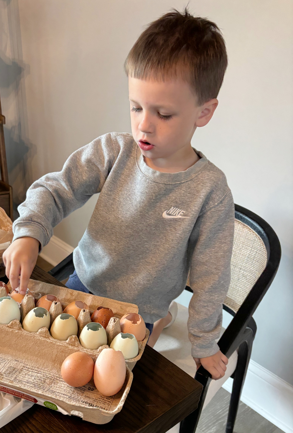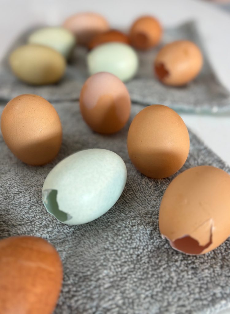 If you use white eggs and want to dye them, do this before emptying them. I decided to keep my eggs natural. I bought them from a local farmer and Mother Nature colored them more beautifully that I ever could.