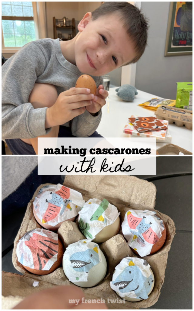 Years ago I spotted the most adorable cascarones in a small shop in San Antonio. I had never seen any before, and I was mesmerized by those little confetti-filled eggs decorated in bright colors. Since then, I’ve seen quite a few tutorials on how to make cascarones, even ones intricately decorated as freshly picked strawberries or tiny pineapples. But when I think of authentic Mexican cascarones, I still think of that little basket in the gift shop years ago. Simple, dyed in brilliant bright colors and topped with little torn pieces of colored tissue paper, as if lovingly created by children on the eve of a festive occasion. Those are the ones I’ll be making in this tutorial, along with my very eager 5-year-old assistant.