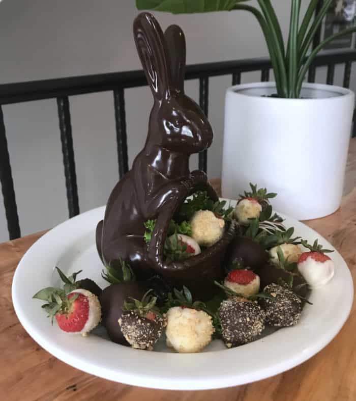 Now here is where the fun begins. To add a festive touch to your Easter celebration, pair the berries with a faux chocolate bunny (see the post Faux Chocolate Bunny and Female Empowerment).