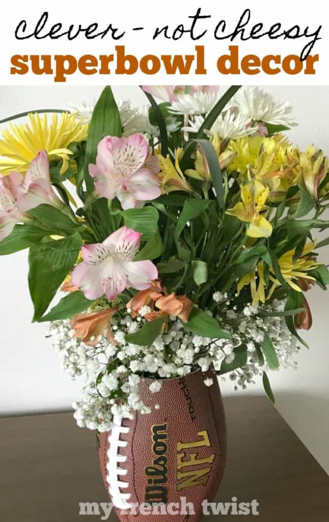 This vase made from an actual football is one of my favorite ideas for superbowl decor. Instructions for making one can be found here.