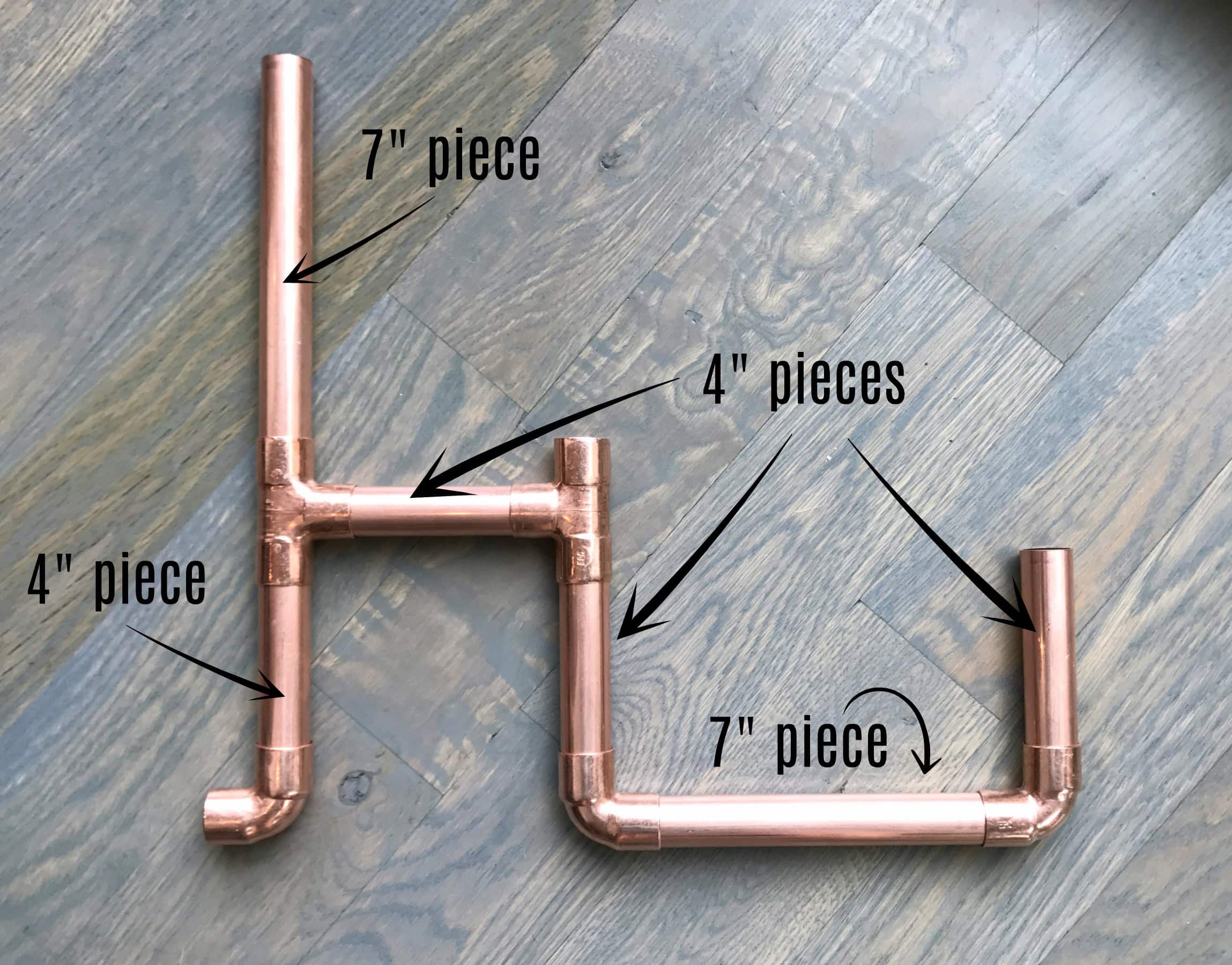 Keep in mind, this is a flat view. Once the copper pipe candelabra is upright, all the pieces are movable and can be manipulated to suit your vignette.