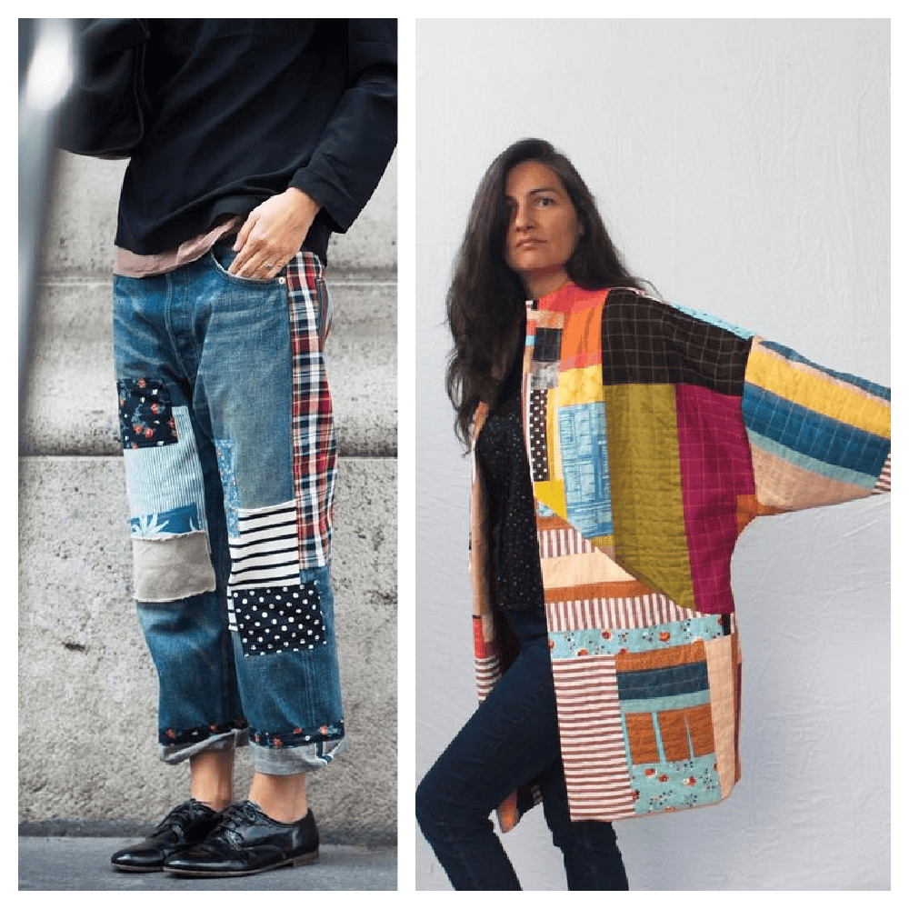Patchwork trends have come and gone several times in my lifetime. Remember madras plaid patchwork fabric? A little too preppy for me, but the patchwork examples below are right up my alley.