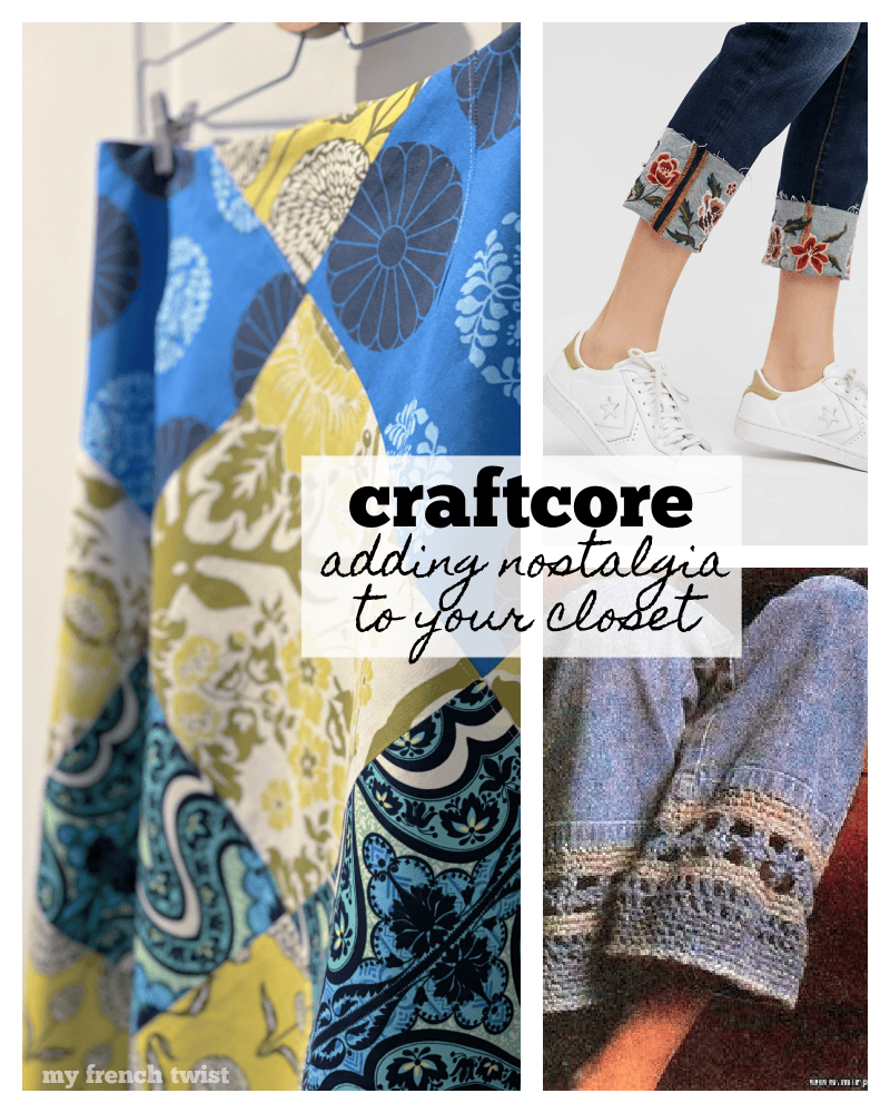 I have to admit that I laughed a little when I first came across the term craftcore. What is it? A current fashion aesthetic that centers around clothing with “handmade” touches – crochet trims, patchwork fabric, embroidered details. You get the idea. Some see it as a nod to the Bohemian genre.  Others simply describe it as, well, crafty. All I know is that I love it. Moreover, I have ALWAYS LOVED IT. Coming from a chick who sewed her own prom dresses, I have always been drawn to clothing with beautiful, handmade detailing. And I’m glad to finally know that my lifelong personal fashion aesthetic – after several decades – FINALLY has a proper name.