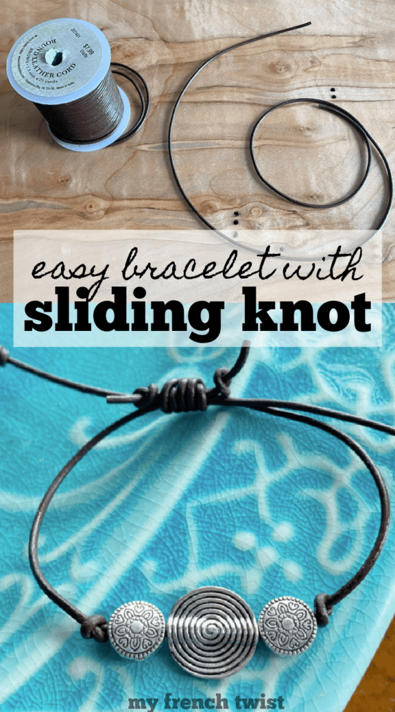 easy leather bracelet with sliding knot