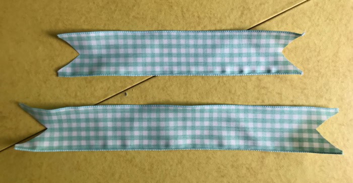 Cut 14 pieces of ribbon 17″ in length; also cut 14 pieces that are 13″ in length. Trim the ends as shown in photo below.