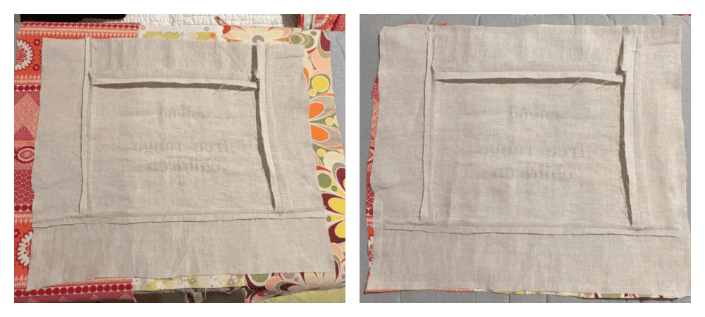 Place the pillow front to the pillow back with right sides together, and cut the back the same size as the front.