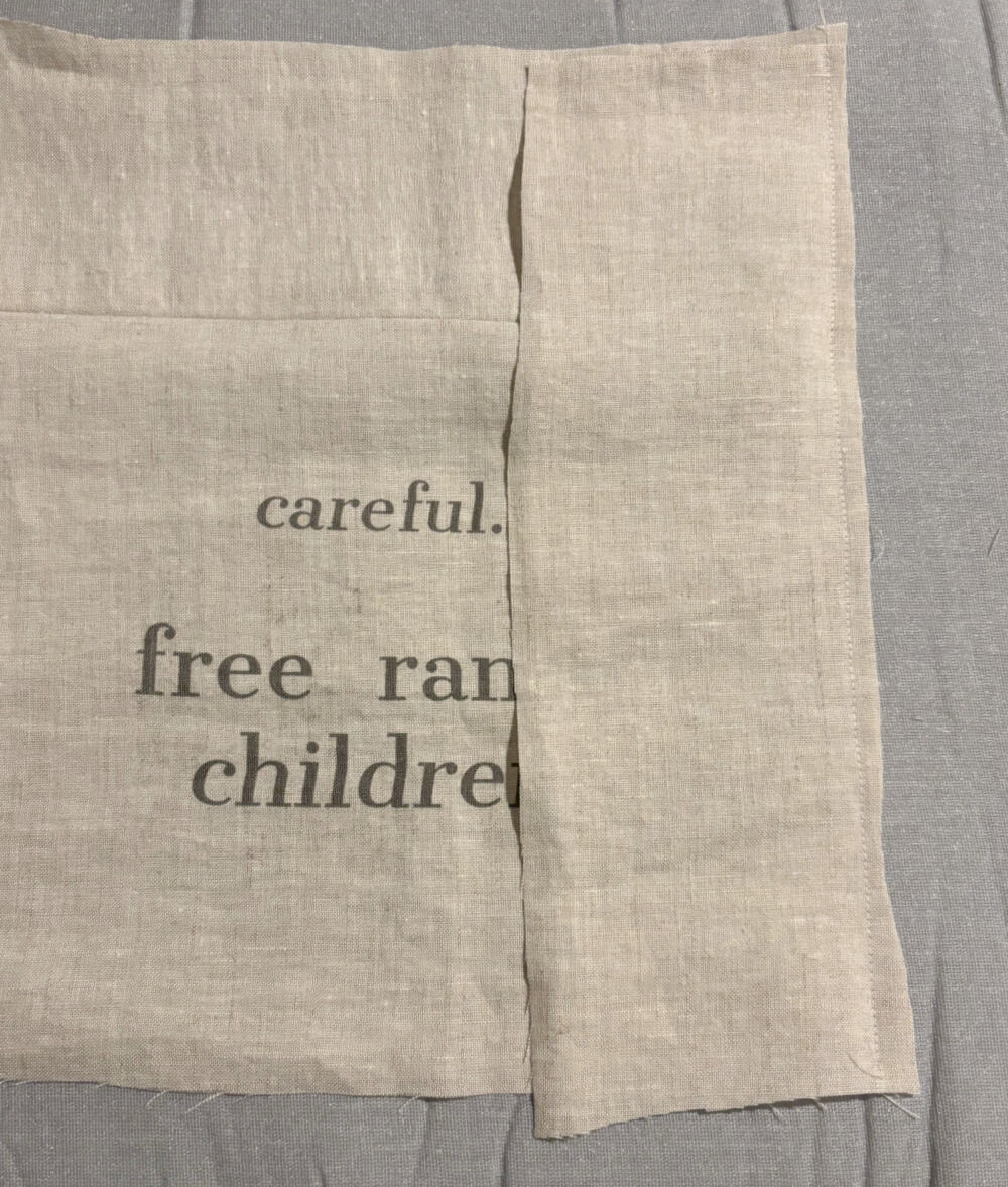 Place another strip of fabric, with right sides together, to the side of the pillow face and stitch. Press seam open.