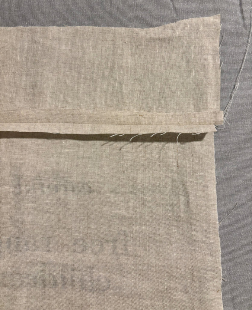 Cut 4 strips, each 3-4″ wide, of the same fabric used for the printed design. Cut the strips, long enough to create a border around the printed piece. Place the top strip onto the face of the pillow with right sides together and stitch along the edge. Iron seam open.