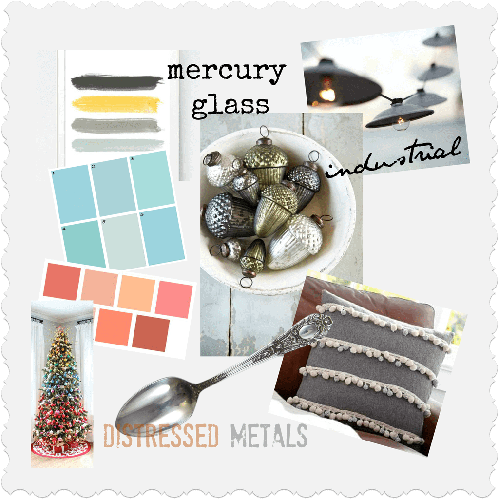 My theme for the 2015 Christmas Challenge was mercury glass, and here’s the idea board I used.