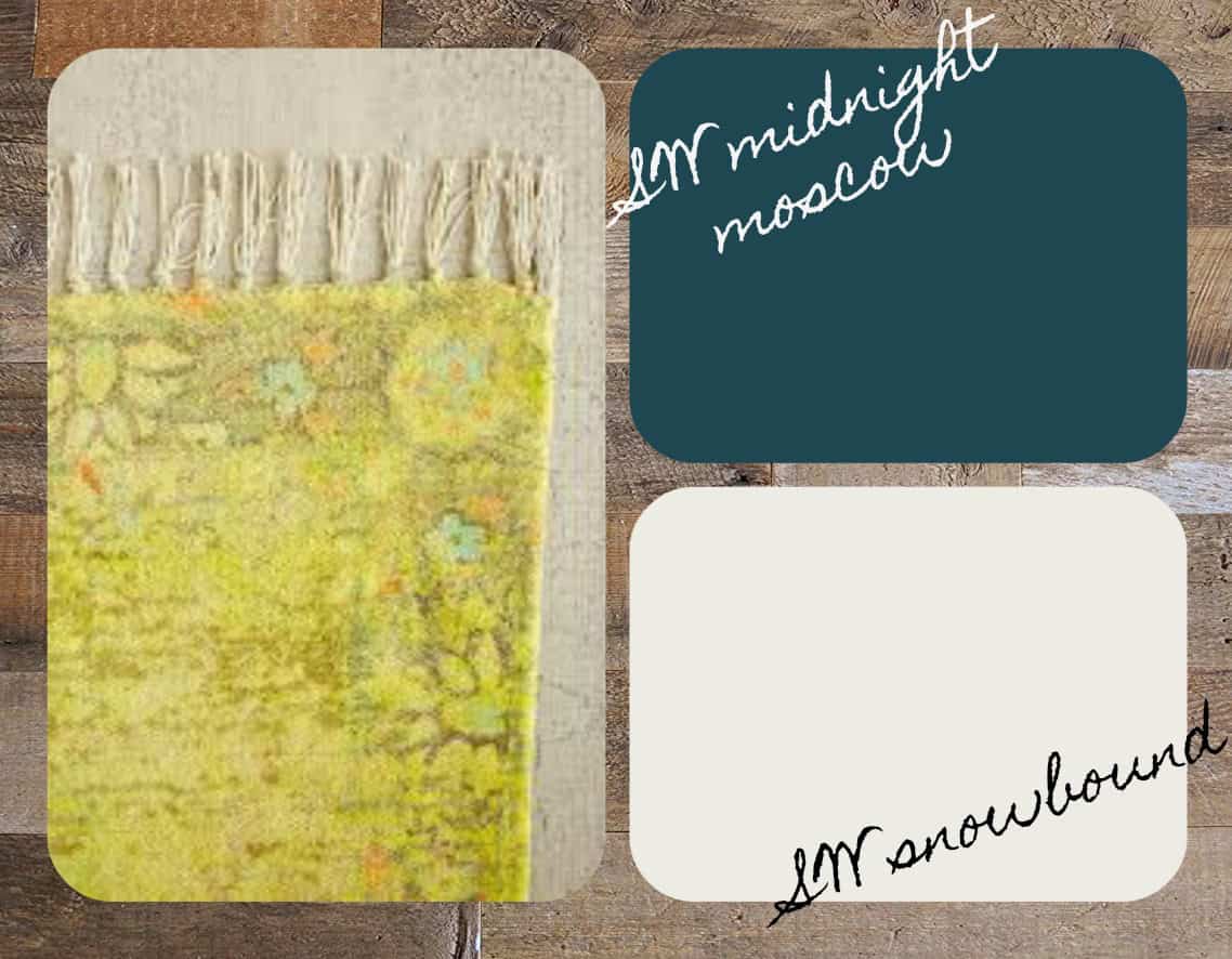 This is where the fun begins. A pop color is an accent color that adds flavor to the design. The exclamation point at the end of the sentence. And it usually comes from something that tugs at your heart. For me, it is this overdyed chenille rug from Urban Outfitters in a beautiful citron color. It tugged. I bought.