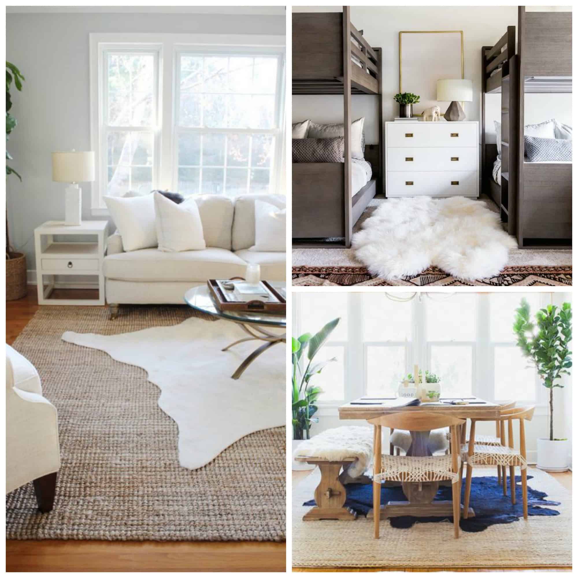 L – photo via Holy City Chic; top R – photo via kidsroomideas.net; bottom R – navy cowhide from AllModern