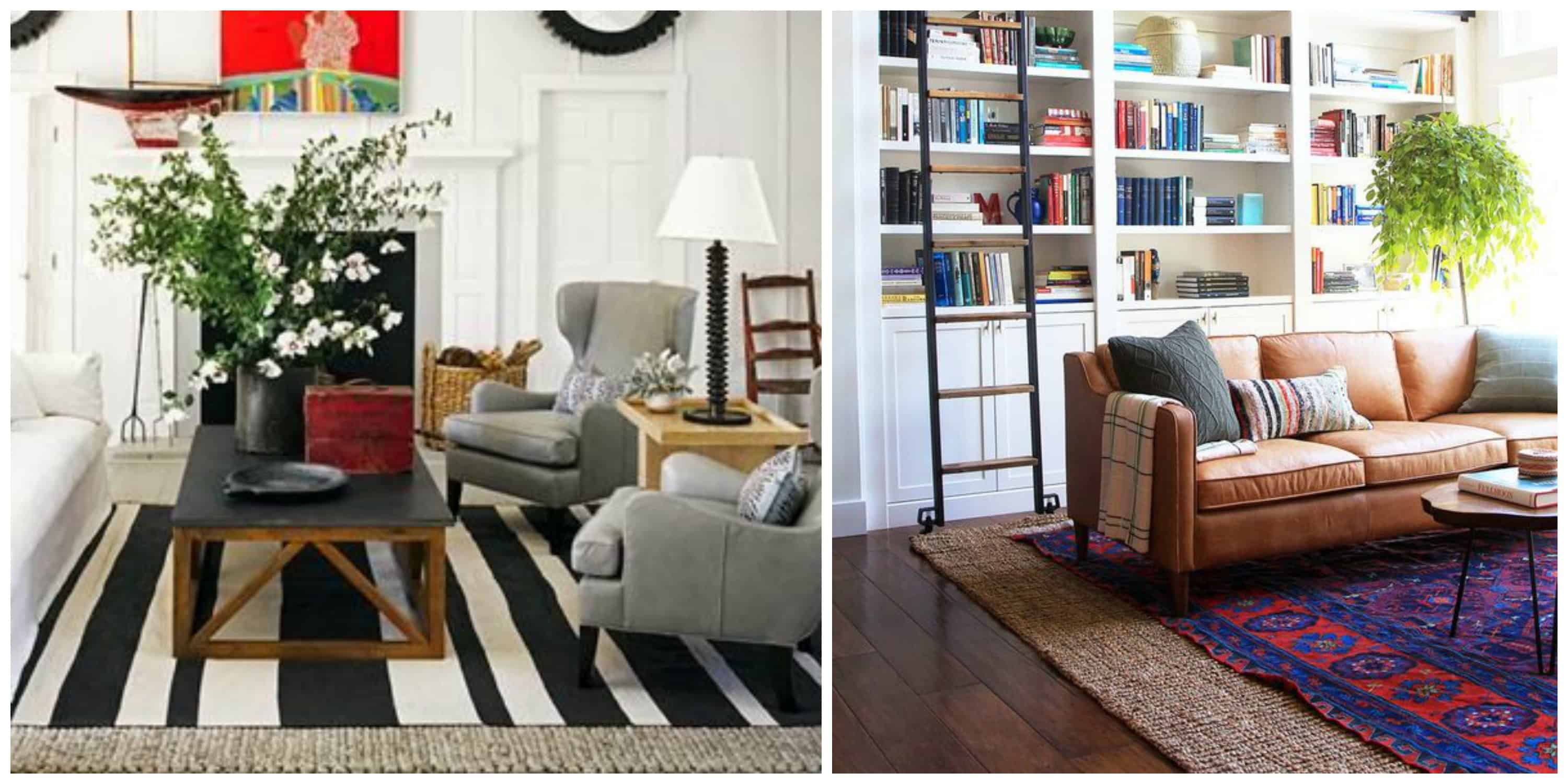 One of the most effective uses of rug layering is to better define a conversation area without using a large patterned rug that may overpower the room. Use a smaller patterned rug layered over a larger base rug.