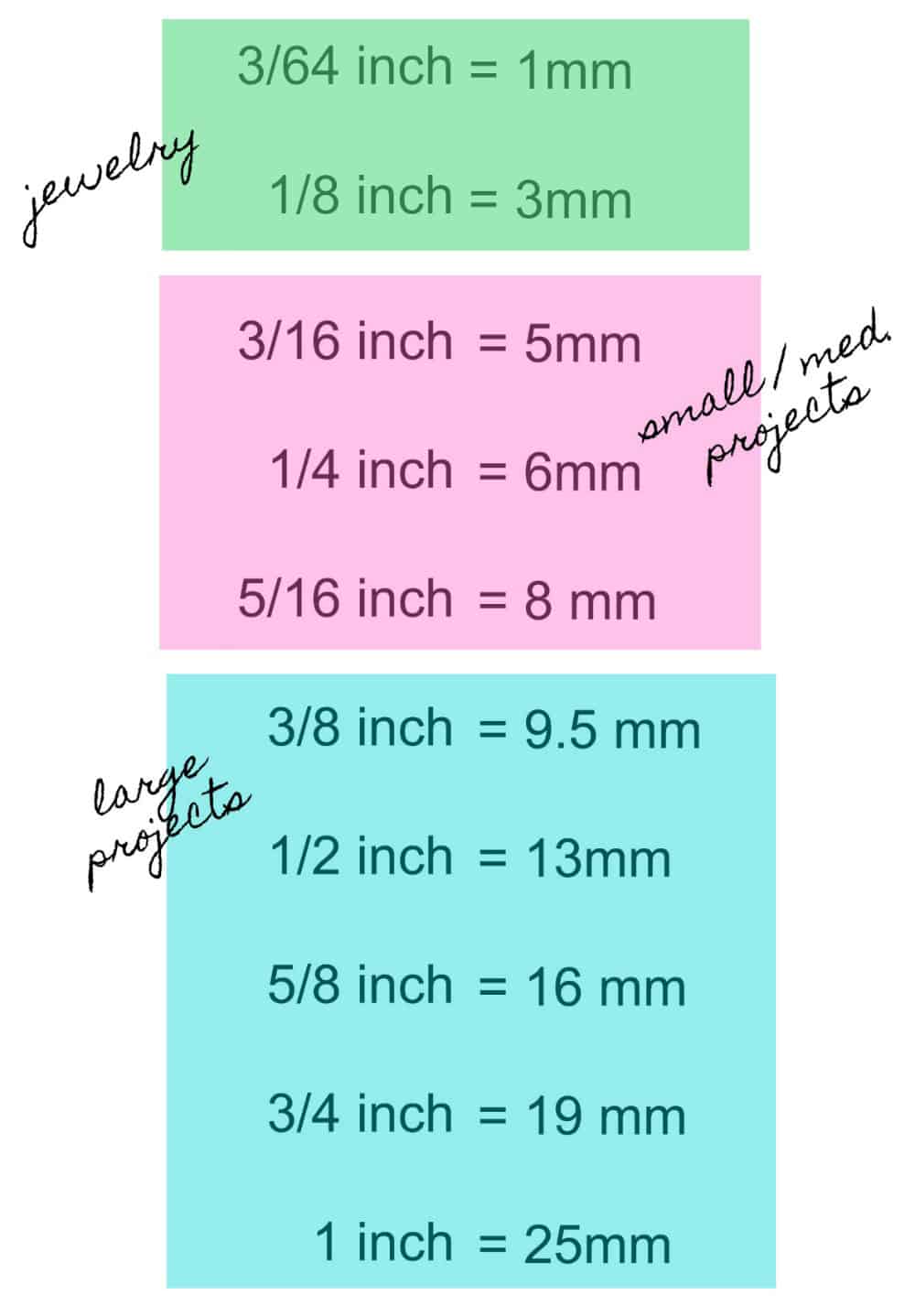 Note: rope diameter is sold in either millimeters or inches. The chart below may prove helpful.