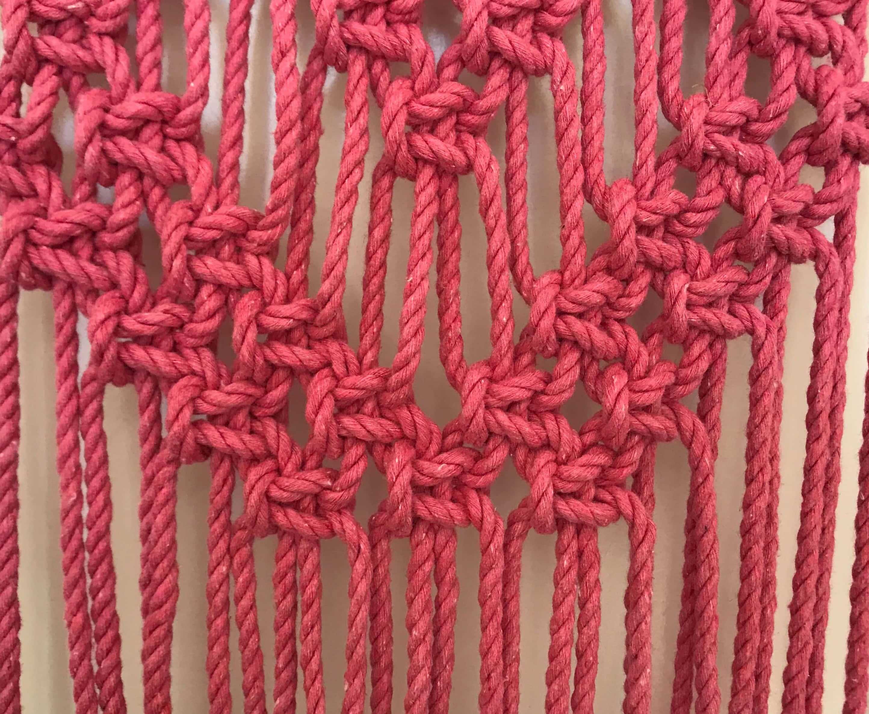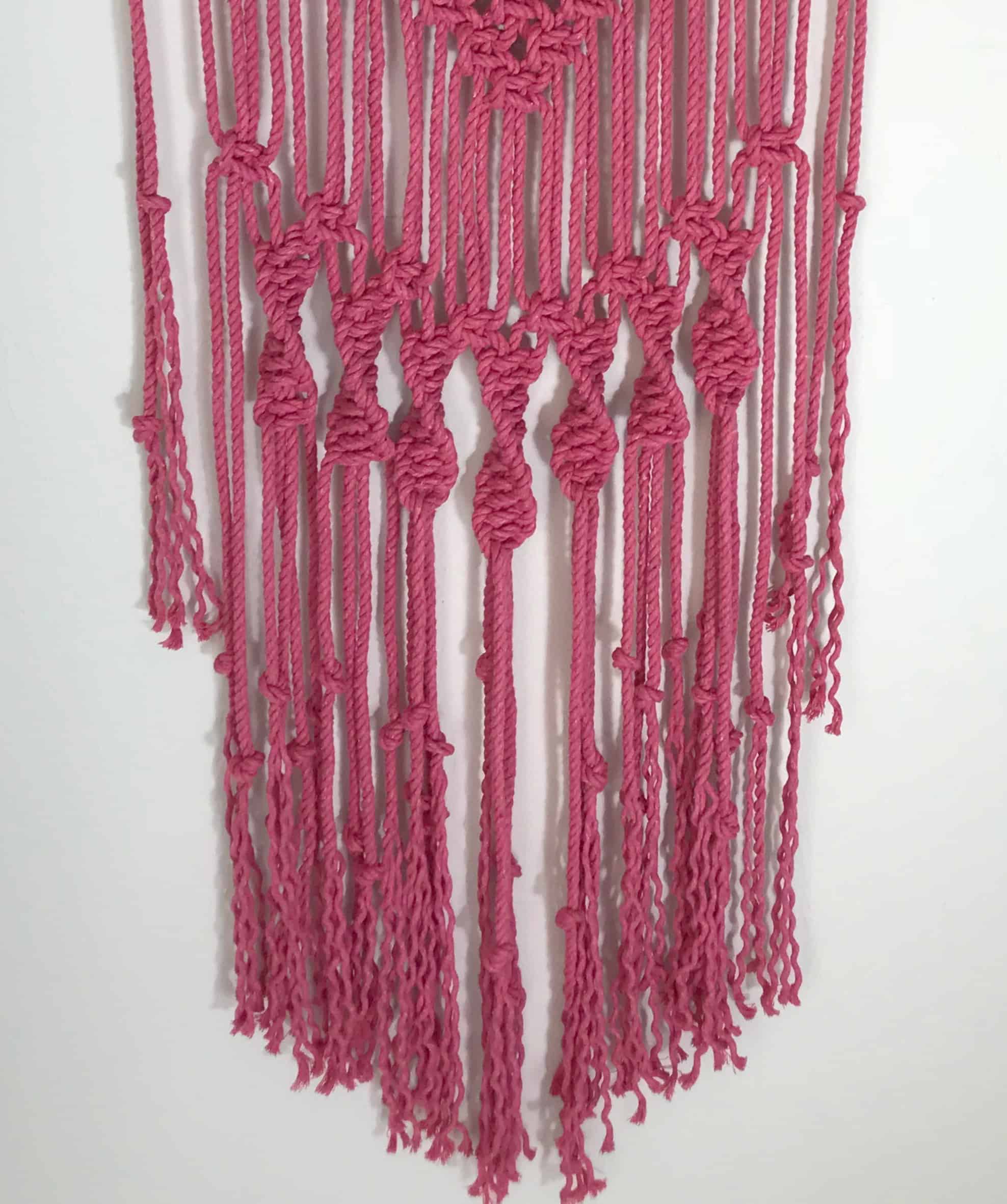 Very pretty wall piece to be hung just about anywhere. Love the color. It has been many years since I worked with macrame cord. This is beautiful.