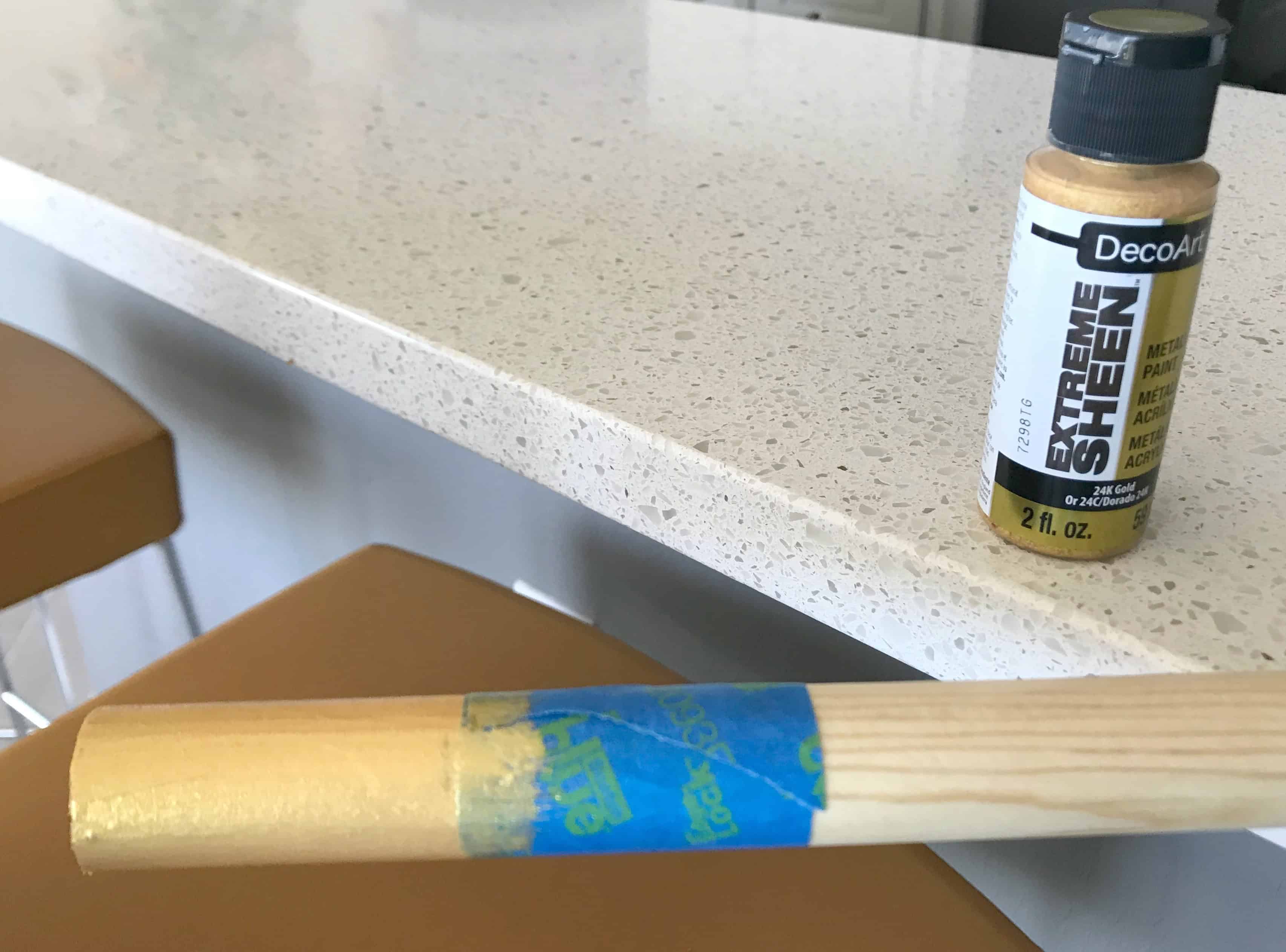 To add a bit of bling to the dowel rod, I painted the ends with gold craft paint.