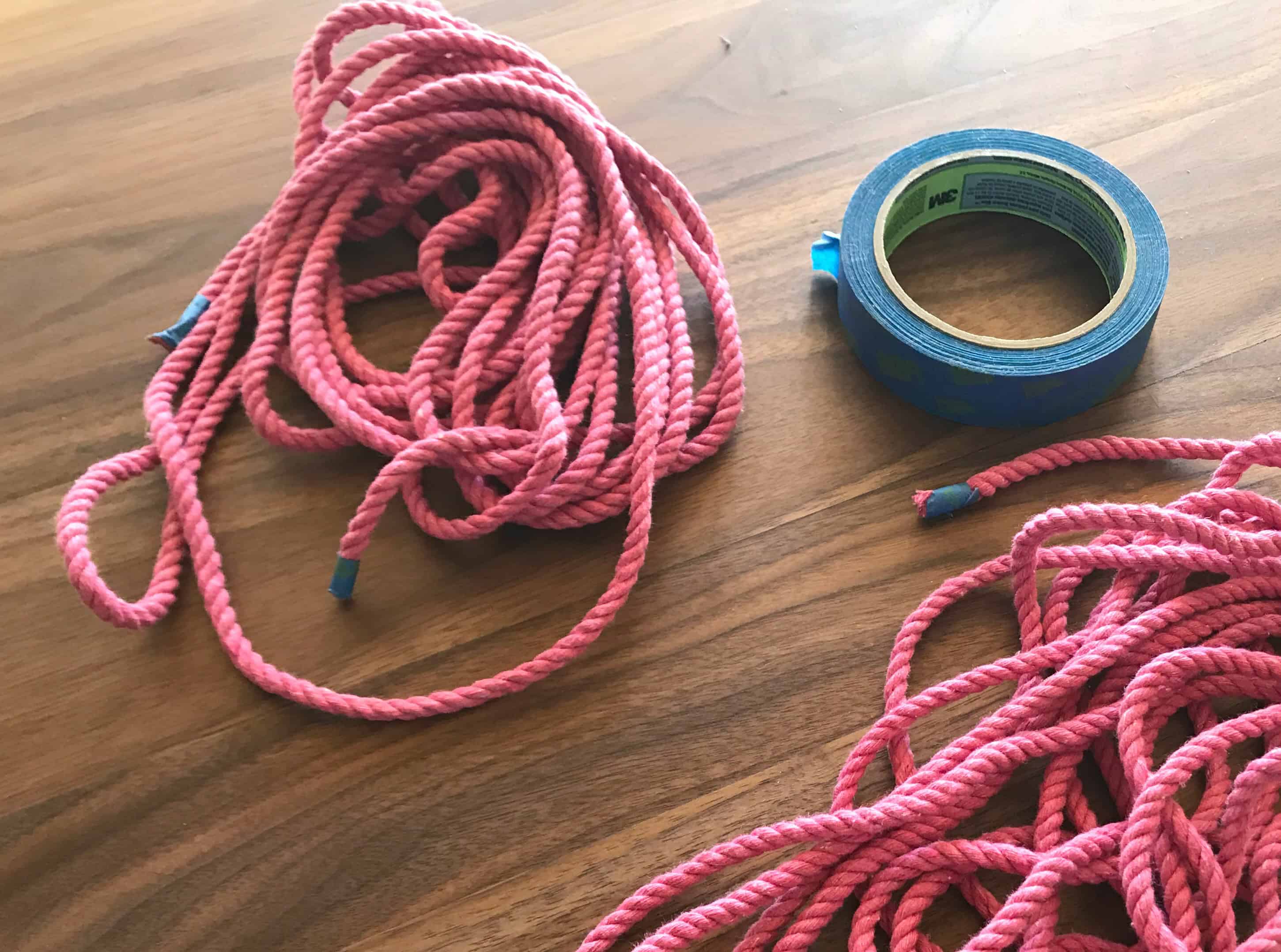 I then cut 16 pieces of rope, each measuring 20 feet. Always apply tape to the ends of the rope pieces to prevent fraying.