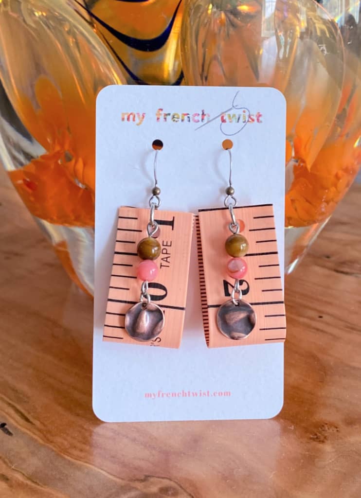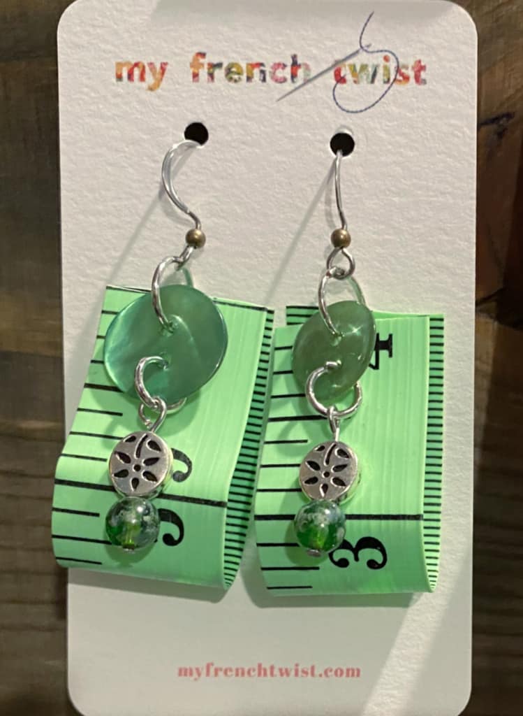 Yes, you read that correctly. Measuring tape earrings. And although I don’t usually fall for gimmicky items, I think these are sweet. They also make a perfect gift for that crafty friend.