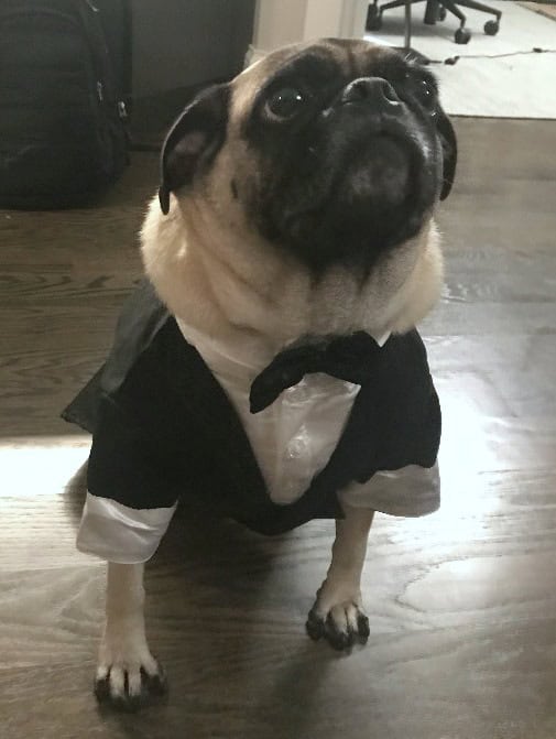 And speaking of fashion, my youngest son Hadji turned many heads in his new tuxedo. (Just a side note for any of you pug owners – order a large regardless what the size chart says.)