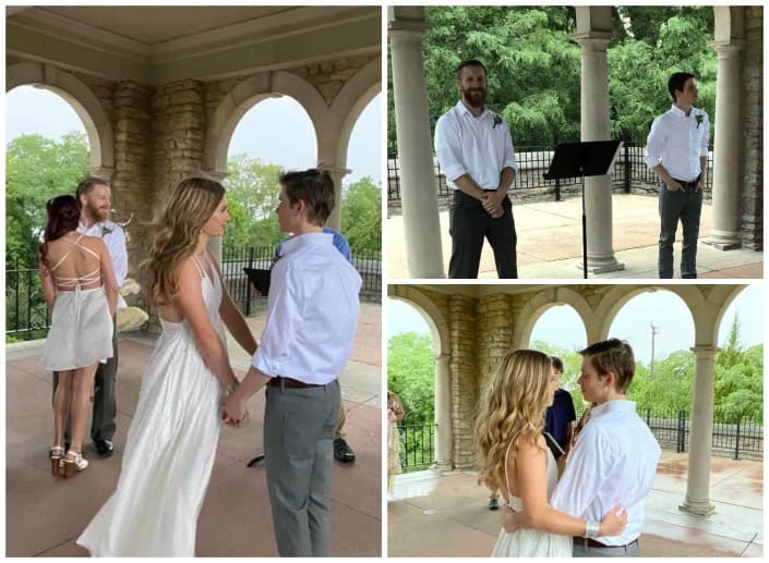 Vows were exchanged in a graceful stone pavilion at a park just down the street from my home. An unexpected thunderstorm visited briefly, as if to add Mother Nature’s shout of approval.