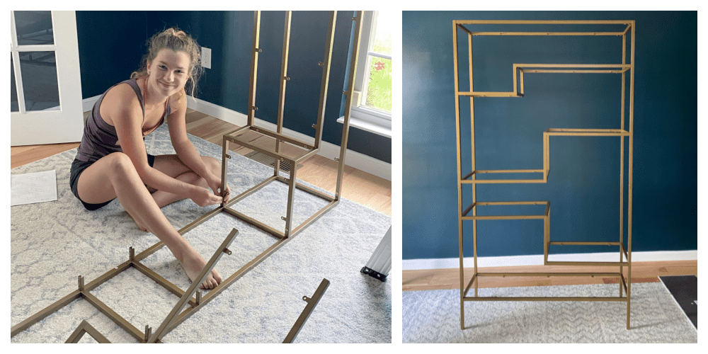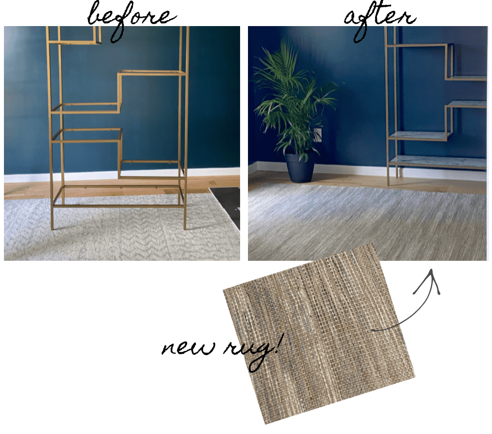 And yes, that led to the necessary decision to purchase a new rug. (That’s our story and we’re sticking to it.) We realized the free rug Lilly salvaged from my basement was a safe choice but not an exciting one. After seeing the life that brass brought to the room, we wanted a rug with warm tones. And we found a perfect solution at Target – a jute and rayon flat-weave with a warm, rattan earthy feel.