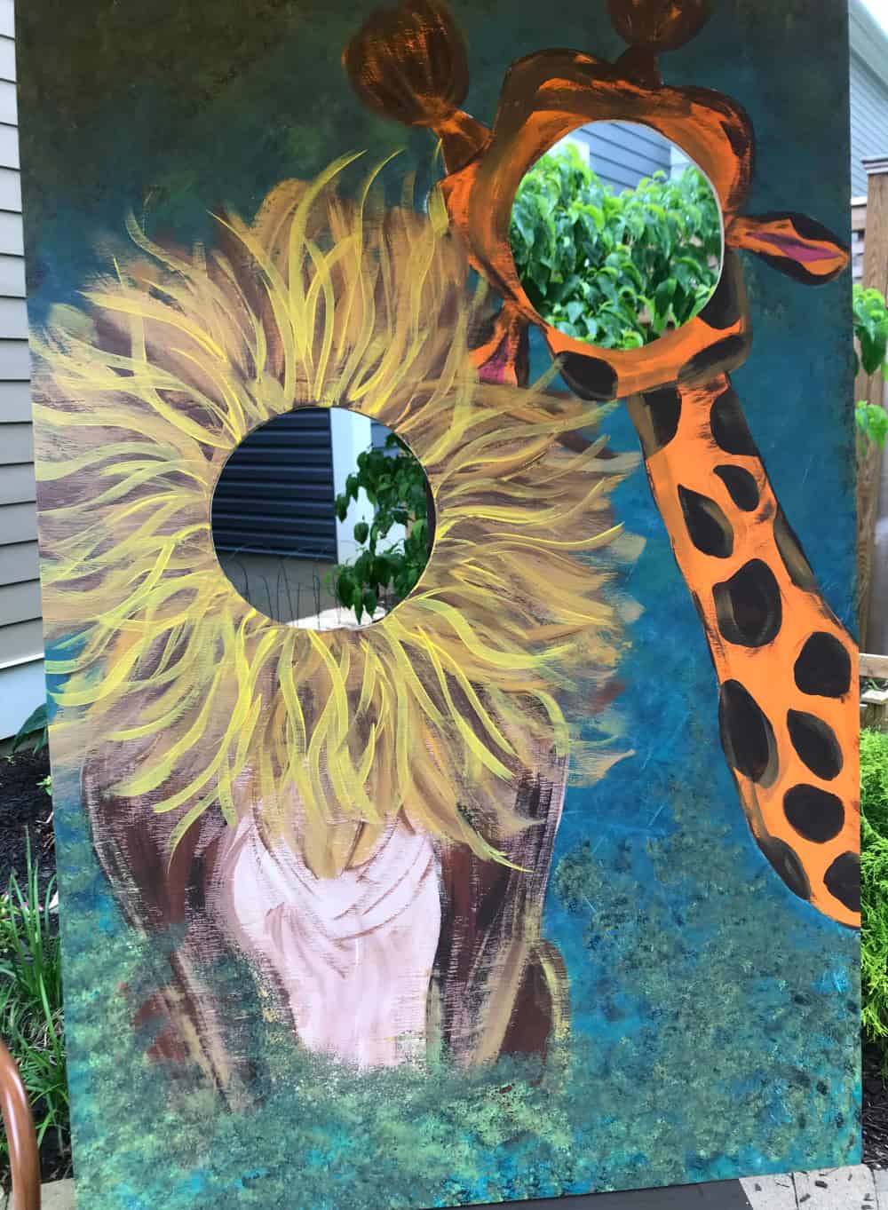 And for the third board, I painted a giraffe & lion. If you think the lion looks like a gorilla wearing a sunflower costume, you’d be wrong.
