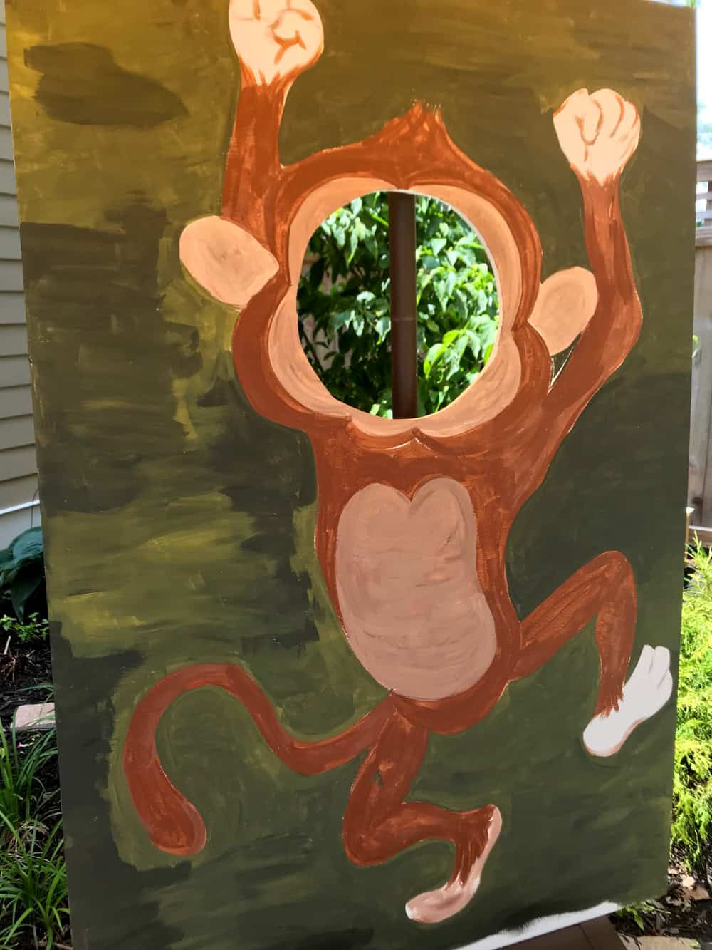 Now for the fun part. For the first board, I decided to paint a monkey. I sketched my design onto the board, then painted it with craft acrylic paints. It was fun to see the design come to life.