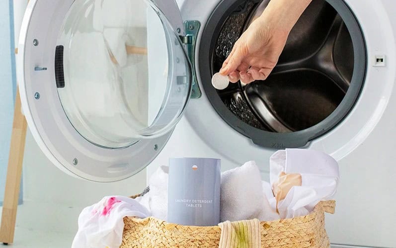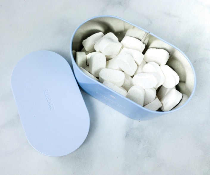 I also use their laundry tablets, which come in a little steel tin. Honestly, I didn’t expect them to work, because I’m picky about my laundry. Well, Blueland didn’t disappoint.