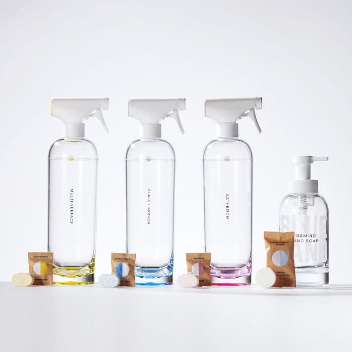 You get a spray bottle. You get little packs of refill tablets. Fill the bottle with water, and toss in a dissolvable tablet. I use their bathroom cleaner and all purpose cleaner. I have not yet tried their glass cleaner but plan to. And one more disclosure: Mel suggested that I buy my own spray bottles, as she found the Blueland bottles broke easily. I took her suggestion and bought these, which have worked great.