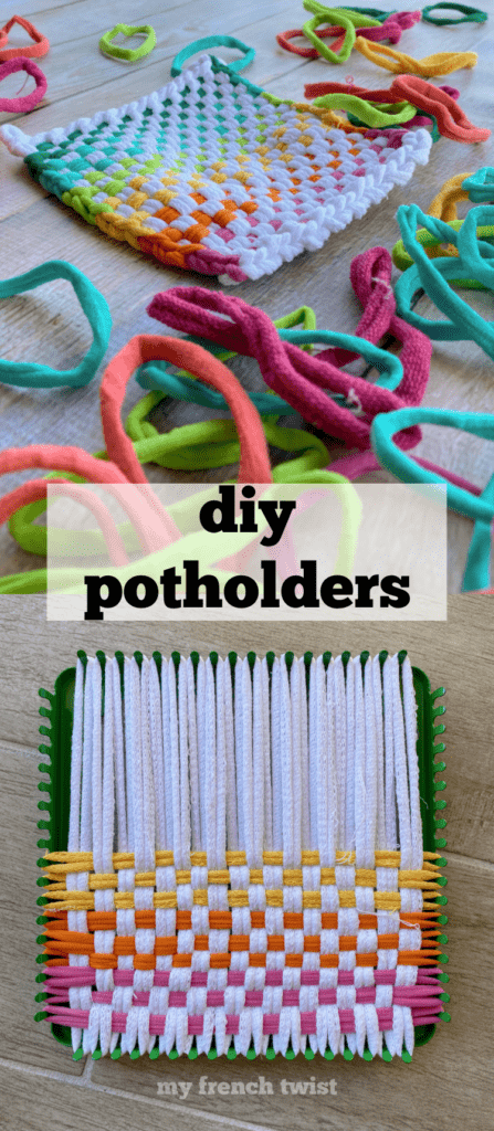 I wrote an earlier post on where to buy a loom and cotton loops, with step-by-step instructions on how to make them. Today I’m sharing the newest one I just made, because I’m in love with the colors! The brighter the better!