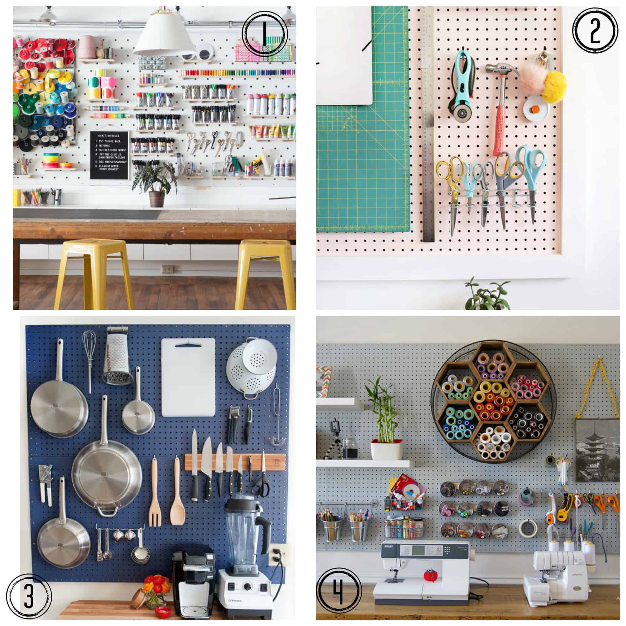 I was torn about which color to use, but the large pegboard above from Oh Happy Day is my absolute favorite. I love the idea of keeping it white and letting bright accessories (thread, yarn) do the talking.